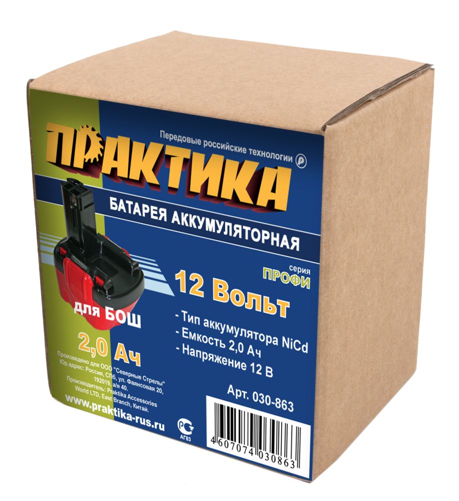 Аккумулятор ПРАКТИКА 12B 2,0Aч, NiCd для аккумуляторных дрелей BOSCH