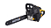 - Пильная оснастка комплектуется шиной на 40 см, дополненной цепью с шагом 3/8 дюйма и звеном толщиной 1,3 мм. Такая конфигурация гарантирует качественный и ровный распил древесных материалов. Механизм регулировки натяжения цепи, расположенный сбоку корпуса, обеспечивает быстрый доступ для настройки.