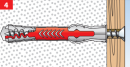 - если дюбель используется с листовым материалом, то сразу за этим слоем он сложится подобно гармошке, формируя крестообразную распорку.