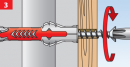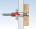 - красный компонент при вкручивании шурупа образует два дополнительных распорных лепестка, открывающиеся перпендикулярно основным.
