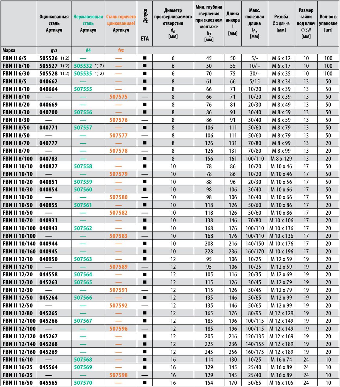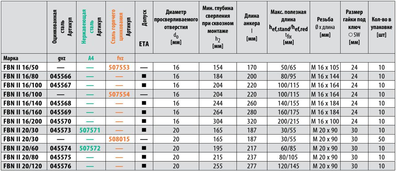 Анкер FBN II пригоден для предварительного и сквозного монтажа. При определенных условиях пригоден для дистанционного монтажа.