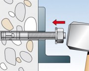 Во время затяжки конический болт перемещается в распорную втулку и расширяет ее, прижимая к стенкам просверленного отверстия.