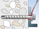 - Шуруп Fischer для бетона, применяется для монтажа самых различных конструкций и сооружений к бетону. Часто данный шуруп используется для монтажа оград, барьеров, стоек для опалубки и разнообразных временных креплений. Изделие способно выдерживать высокие нагрузки на протяжении длительного времени.