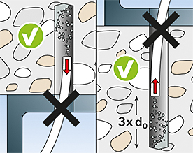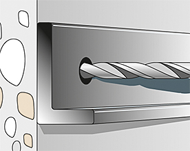 - Просверленные отверстия не нужно чистить при вертикальной установке (потолок и пол). Для крепления к полу необходимо просверлить отверстие в 3 раза глубже.