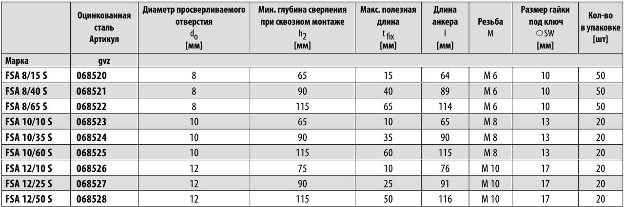 Купить Анкер втулочный FSA в Екатеринбурге и Свердловской области можно в сети магазинов КРЕПЕЖ-СИТИ.