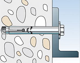 Во время затяжки конус перемещается в распорную втулку и расширяет ее, прижимая к стенкам просверленного отверстия.