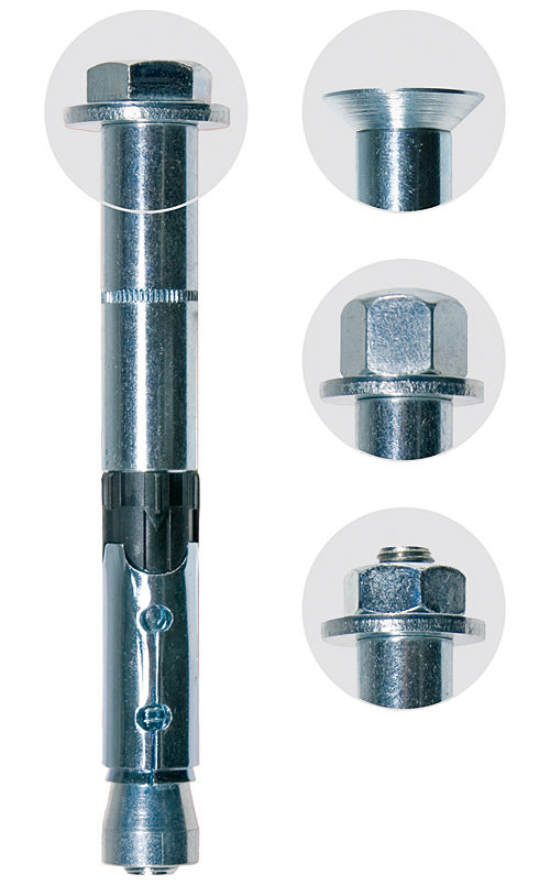 Во время затяжки конус перемещается в распорную втулку и расширяет ее, прижимая к стенкам просверленного отверстия.