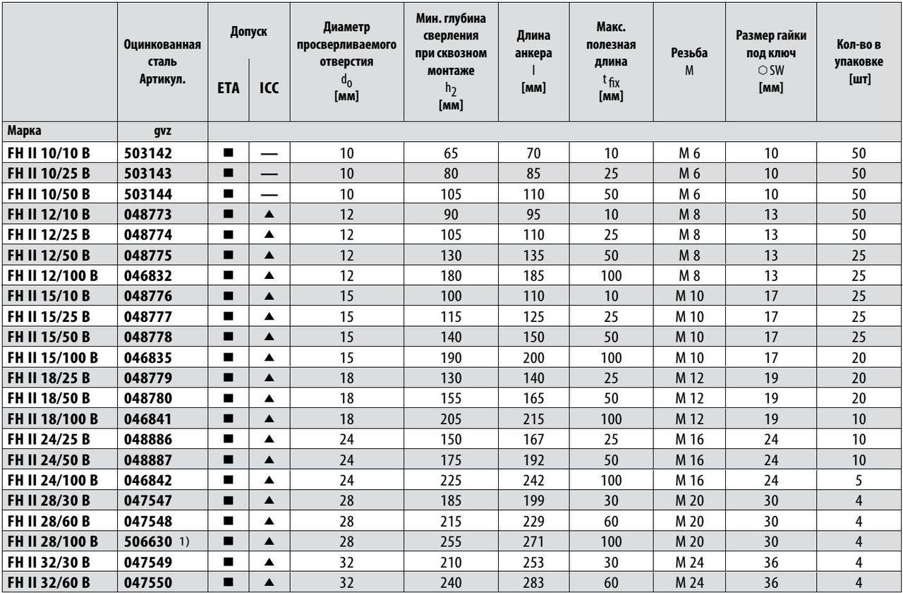 Анкер FH II пригоден для сквозного монтажа.