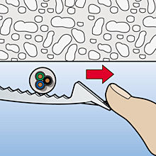 Кабели заправляются под прижимную скобу. Простая конструкция скобы позволяет с легкостью укладывать дополнительные кабели уже после монтажа.