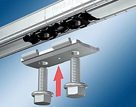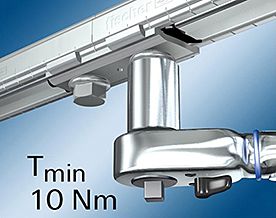 - Пластина имеет 2 отверстия, в которые с помощью гайки FSM и болта по типу DIN 933 (c полной резьбой и шестигранной головой) происходит соединение.