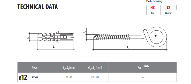 Дюбель с качельным крюком HX-12, Wkret-met, Польша