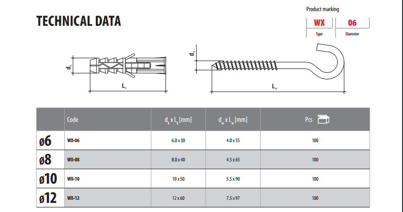 Дюбель с крюком WX-12 Wkret-met, Польша