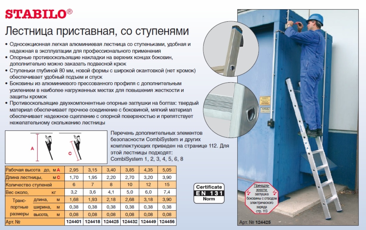 Лестница приставная 7 ступенек, рабочая высота 2,9м, STABILO KRAUSE