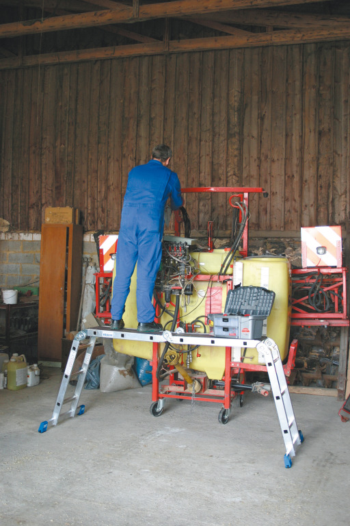 - Может применяться в качестве приставной лестницы, лестницы-стремянки и рабочей платформы