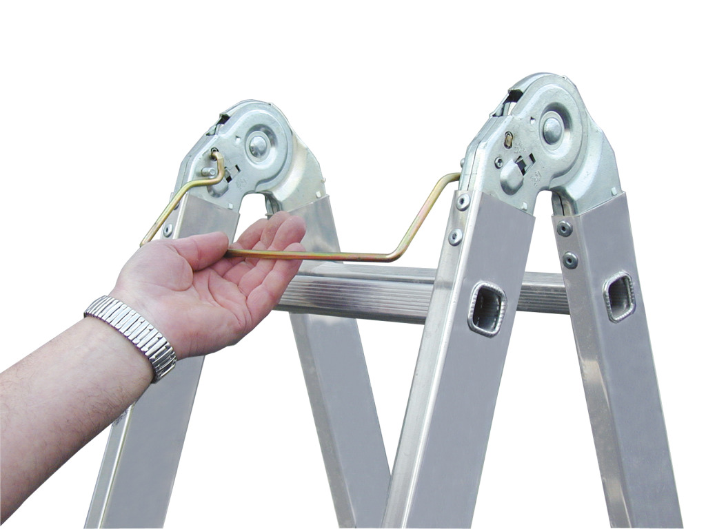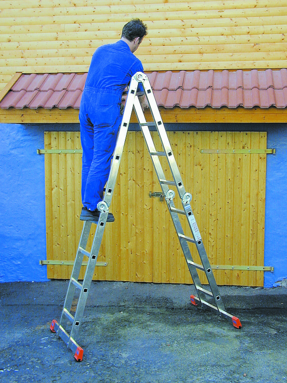 Четырехсекционная универсальная алюминиевая шарнирная лестница: применяется как двусторонняя стремянка, как приставная лестница и как рабочая платформа