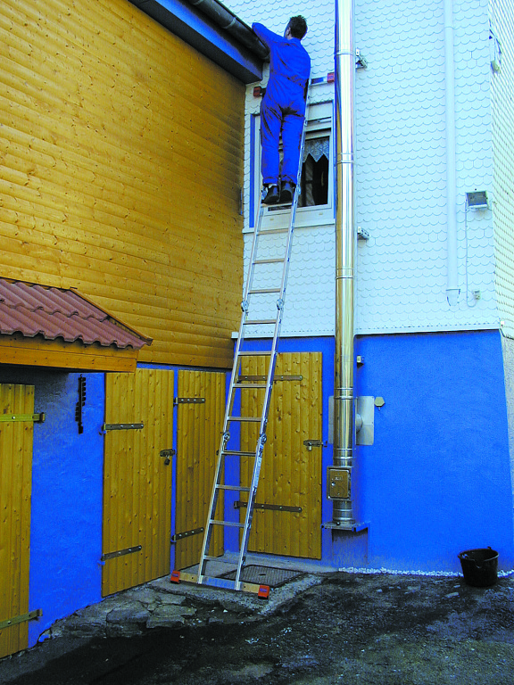 - Противоскользящие двухкомпонентные опорные заглушки: твердый материал обеспечивает прочное соединение с боковиной, мягкий материал обеспечивает надежное сцепление с опорной поверхностью и препятствует нежелательному скольжению лестницы