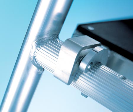 - Страховочные зажимы с силовым соединением и выдвигаемая скоба на перекладине позволяют осуществлять сборку без инструмента.