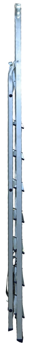 Стремянка в рабочем положении надежно фиксируется рабочей площадкой, а начиная с пятиступенчатой и выше страховочными ремнями.