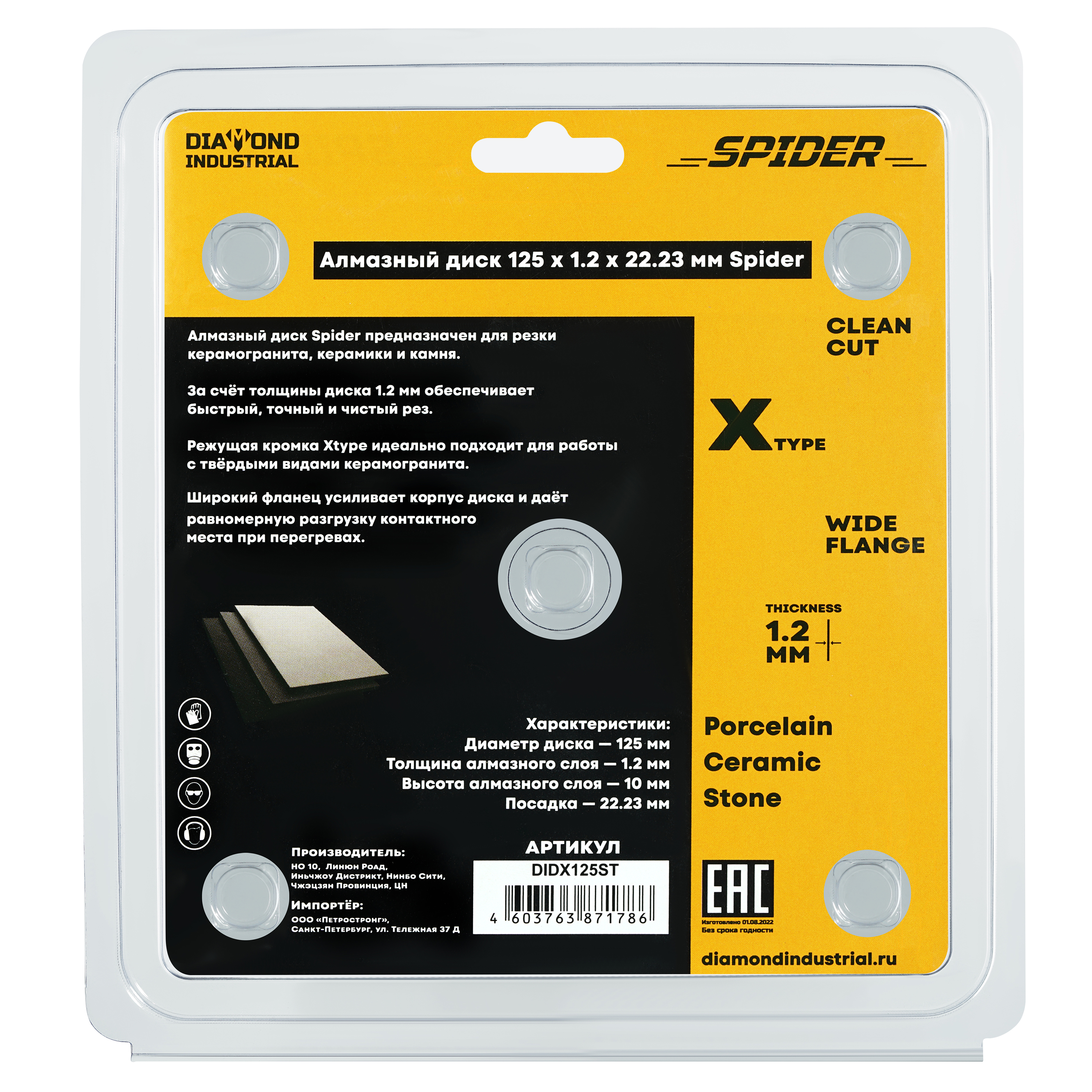 Диск алмазный 125x1,2x10x22,23 SPIDER X-тип (камень, керамогранит, керамика), Diamond Industrial