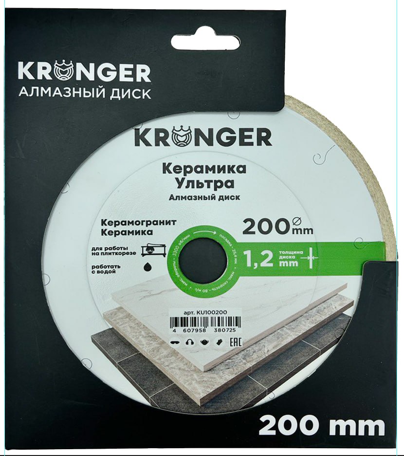 Алмазный диск Kronger предназначен для работы по керамической плитке.