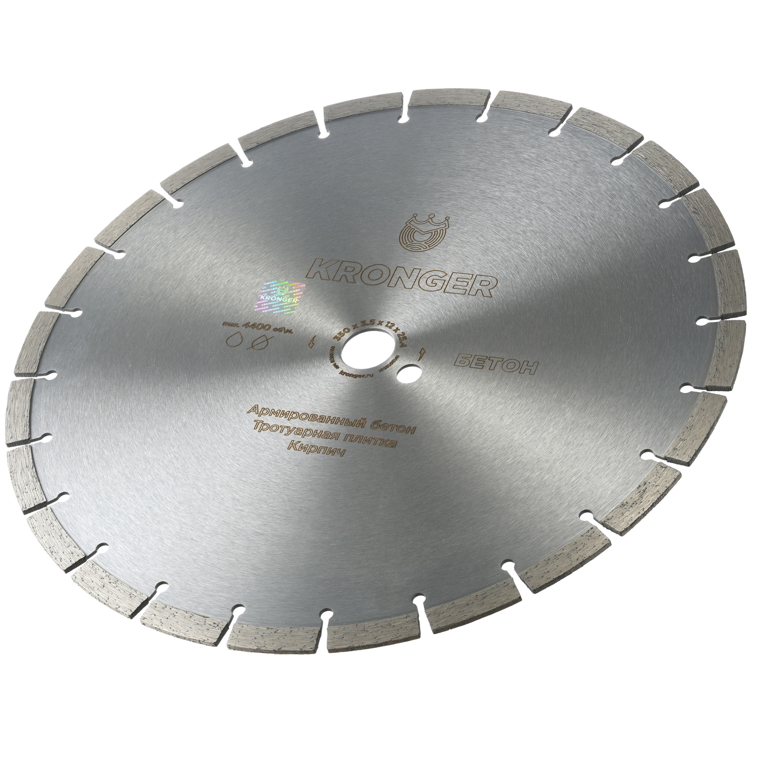 - Алмазный диск Kronger - сегментный, имеет толщину алмазного слоя 3,5 мм, высоту 12 мм.