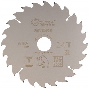 Диск пильный 185х1,3/2,0х30/25,4/20/16 мм 24Т по дереву, с тефлоновым покрытием, CUTOP Profi