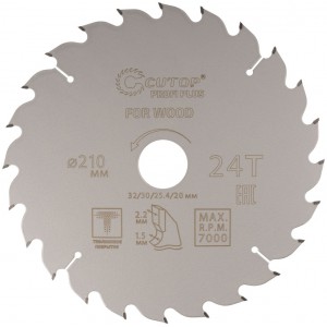Диск пильный 210х1,5/2,2х32/30/25,4/20 мм 24Т по дереву, с тефлоновым покрытием, CUTOP Profi