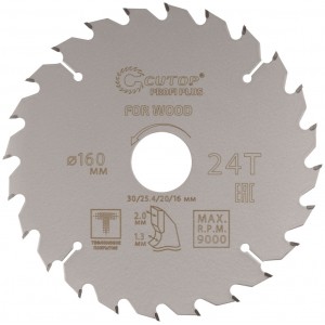 Диск пильный 160х1,3/2,0х30/25,4/20/16 мм 24Т по дереву, с тефлоновым покрытием, CUTOP Profi