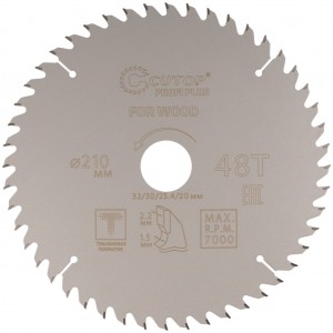 Диск пильный 210х1,5/2,2х32/30/25,4/20 мм 48Т по дереву, с тефлоновым покрытием, CUTOP Profi
