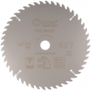 Диск пильный 300х2.0/3.0х32/30/25,4/20 мм 48Т по дереву, с тефлоновым покрытием, CUTOP Profi