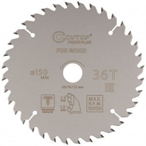 Диск пильный 150х1,3/2,0х20/16/12 мм 36Т по дереву, с тефлоновым покрытием, CUTOP Profi