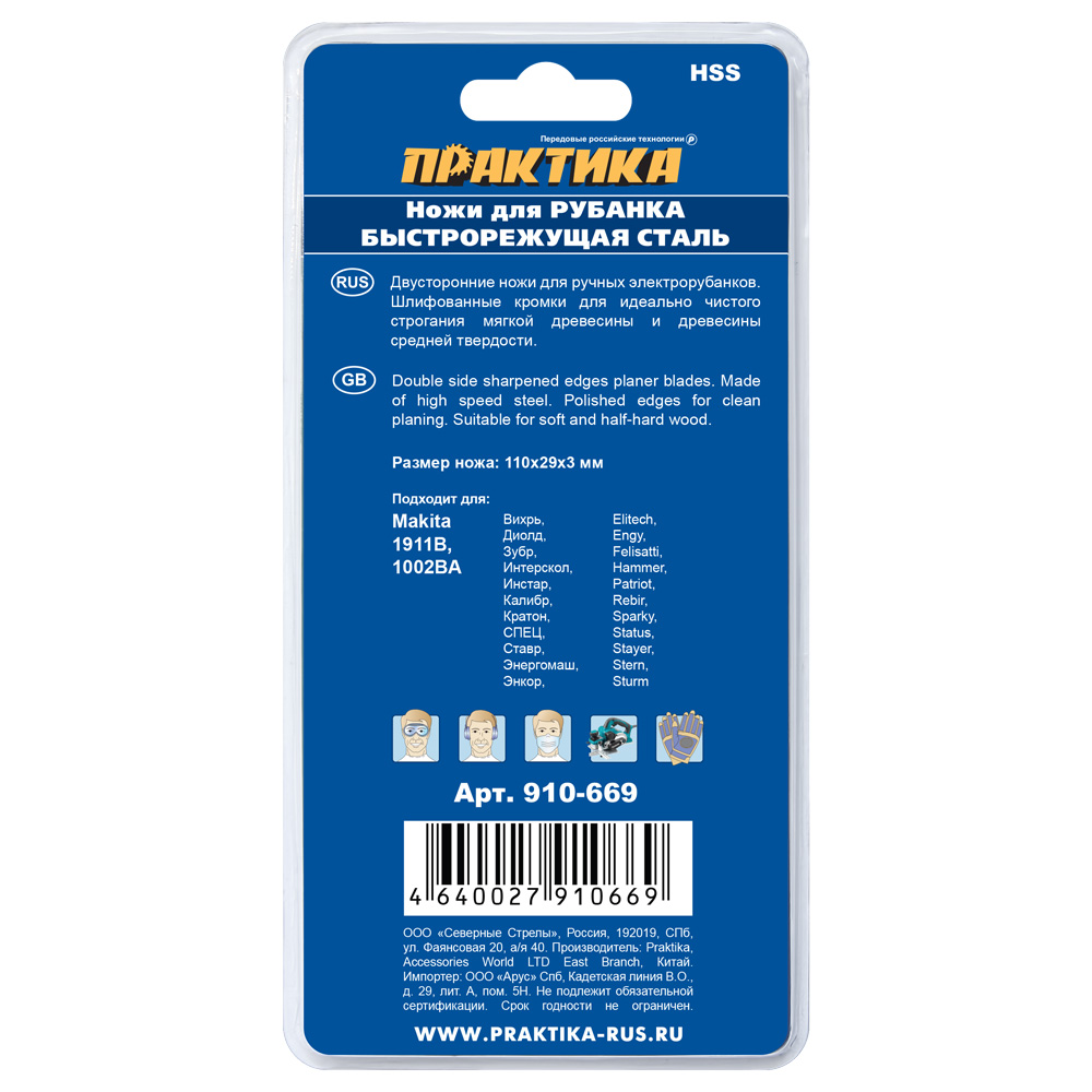 Нож для рубанка 1911B 110х29х3мм (2шт.) БЫСТРОРЕЗ., ПРАКТИКА