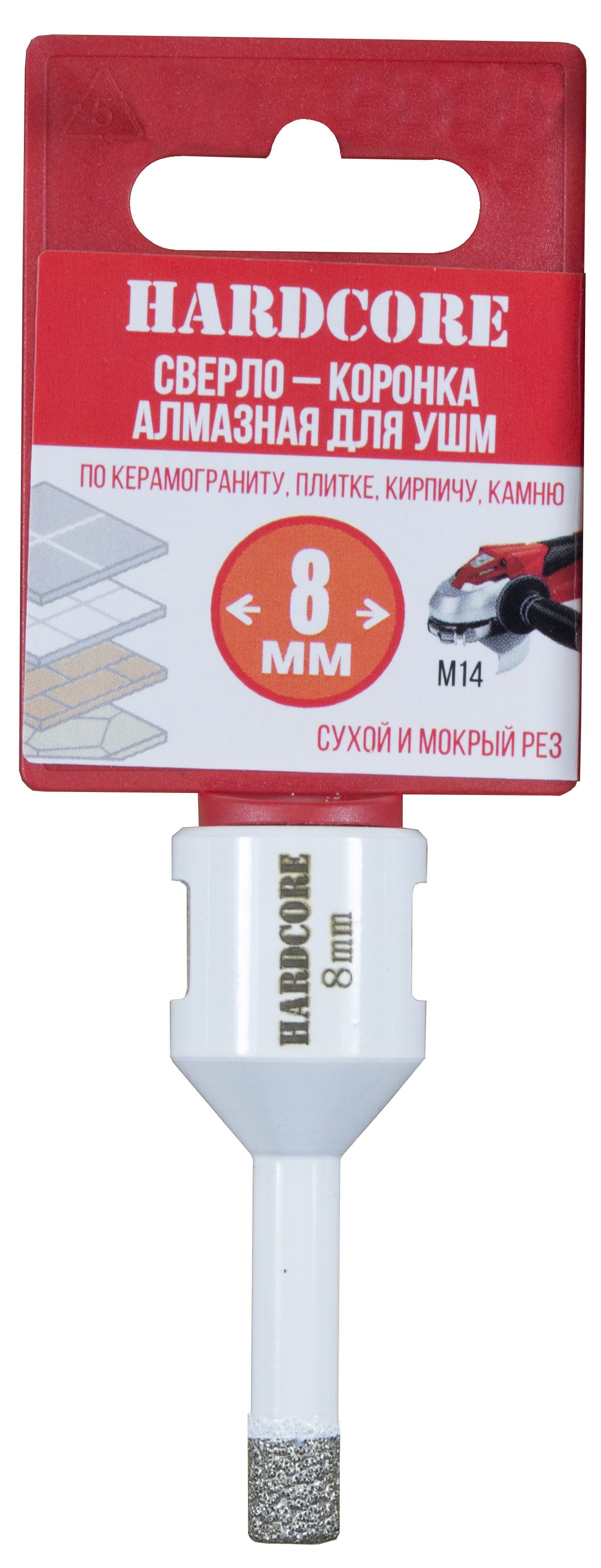 Коронка алмазная по керамике и керамограниту 8 мм/M14 для УШМ, Hardcore