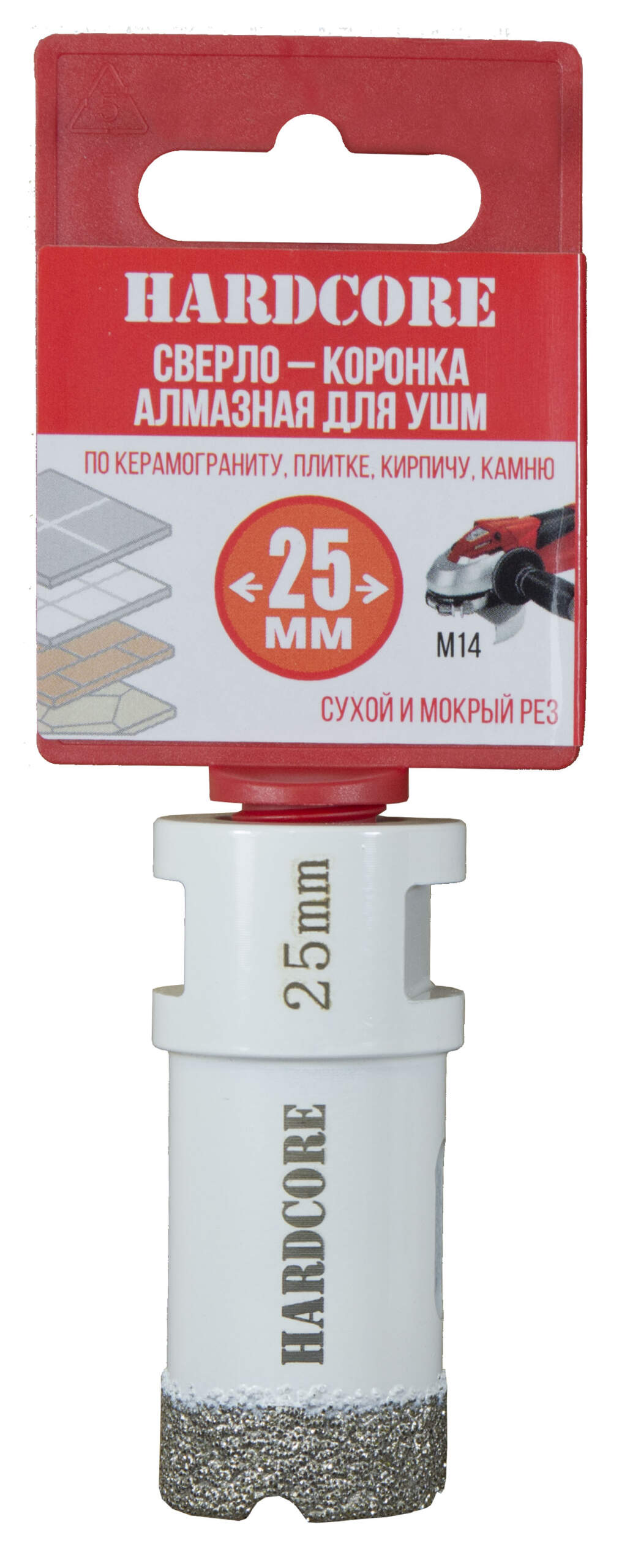 Коронка алмазная по керамике и керамограниту 25 мм/M14 для УШМ, Hardcore