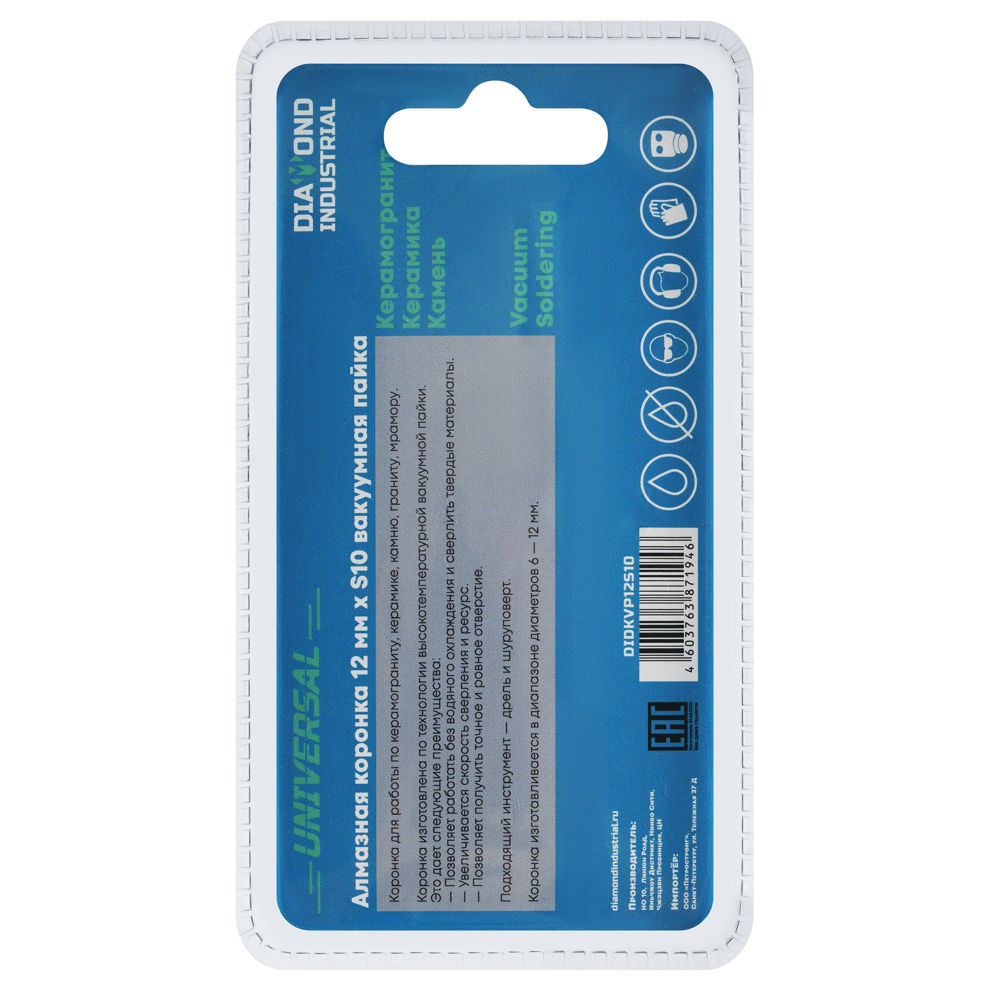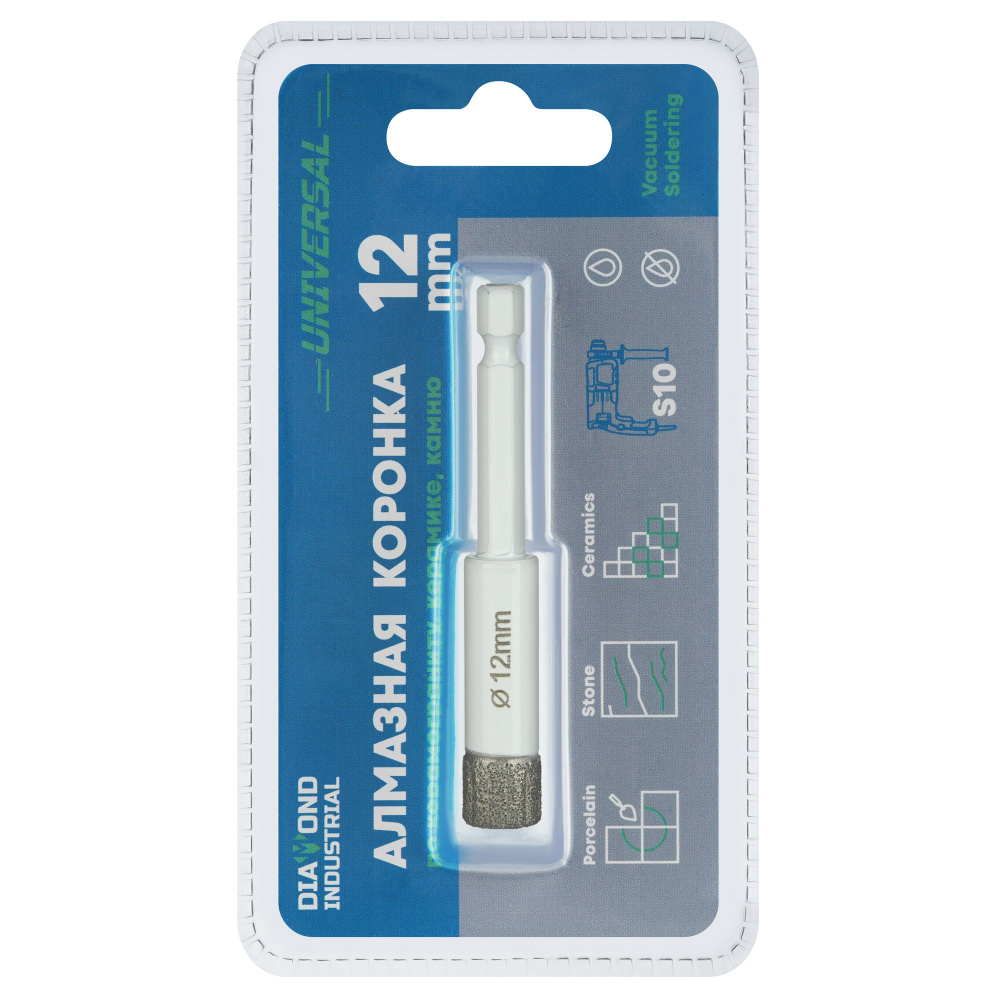 Коронка алмазная по керамике и керамограниту 12 мм, хвостовик HEX 1/4, Diamond Industrial
