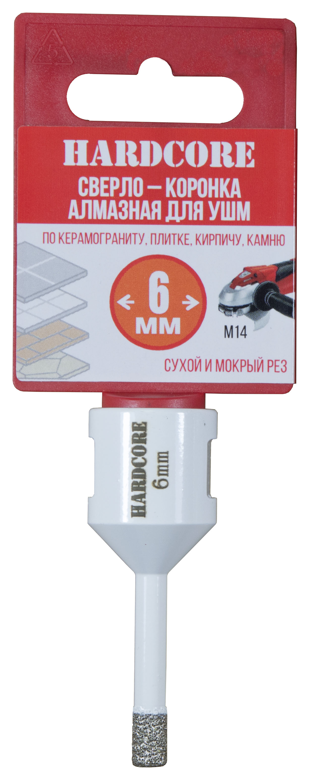 Коронка алмазная по керамике и керамограниту 6 мм/M14 для УШМ, Hardcore