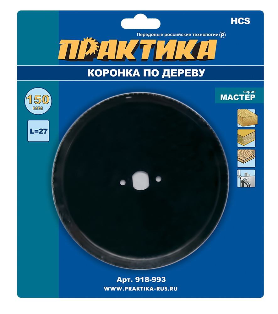 Коронка по дереву и гипсокартону 150мм, L-27мм, HCS, ПРАКТИКА
