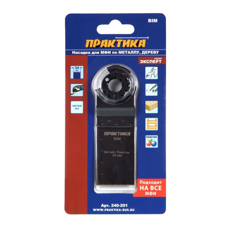 Насадка для мультитула 110*34мм, ПРАКТИКА, мелкий зуб, удлиненная (BIM, по металлу, дереву)