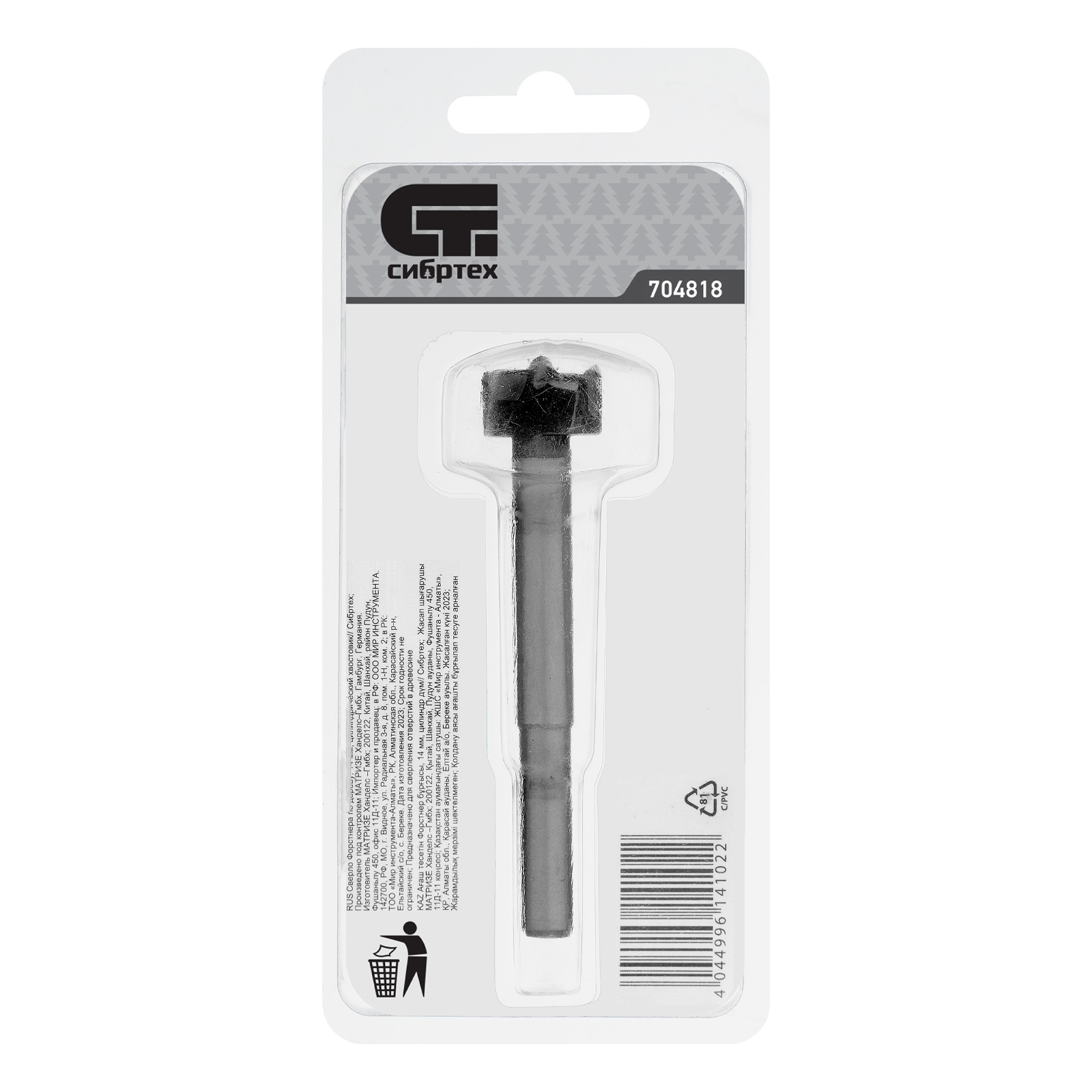 Сверло Форстнера по дереву Сибртех с цилиндрическим хвостовиком, используется для получения глухих отверстий диаметром 18 мм в древесине, ДСП, ДВП и других материалах.
