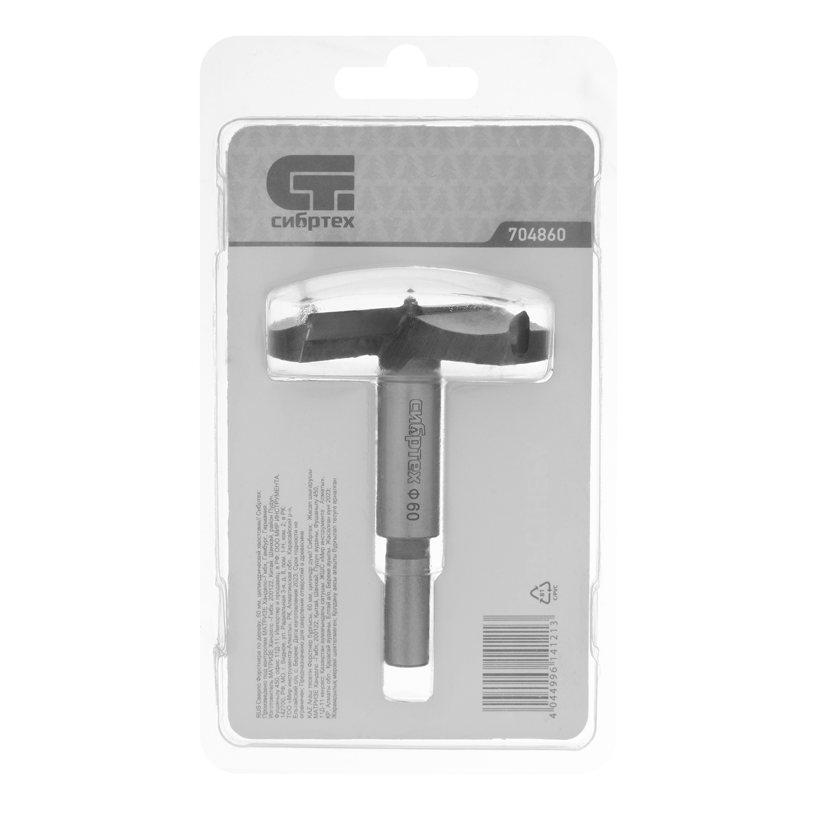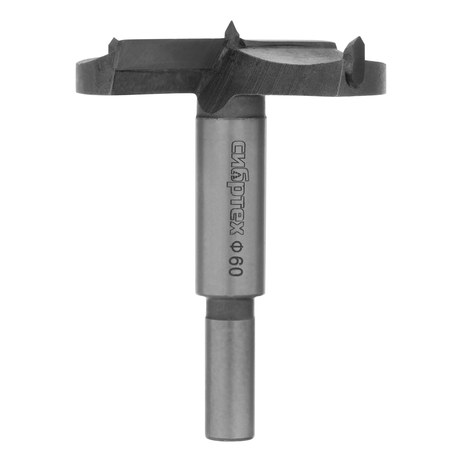 Сверло Форстнера по дереву Сибртех с цилиндрическим хвостовиком, используется для получения глухих отверстий диаметром 60 мм в древесине, ДСП, ДВП и других материалах.