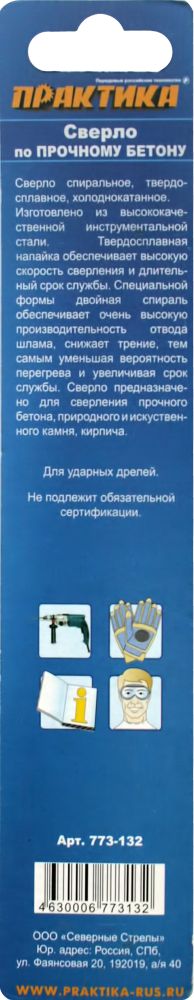Купить Сверло по бетону ц/х ударное 4-х спиральное Профи ПРАКТИКА в Екатеринбурге и Свердловской области можно в сети магазинов КРЕПЕЖ-СИТИ.