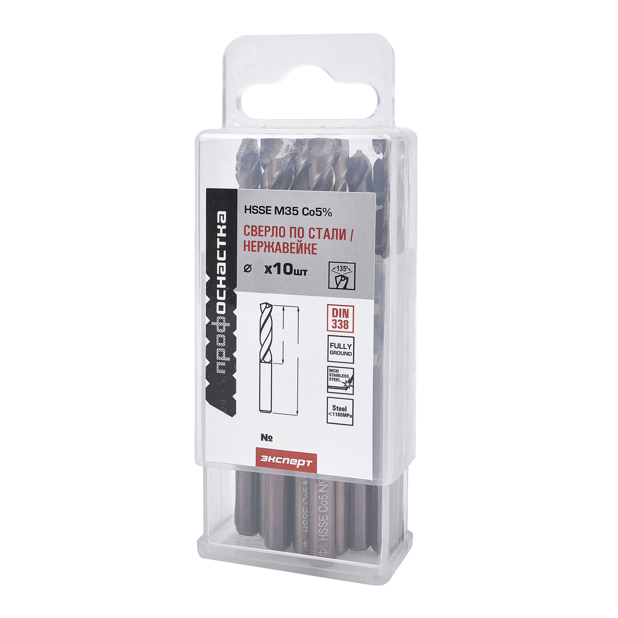 Сверло ПрофОснастка Эксперт HSSE M35 Co5%, DIN 338 выполнено из высококачественной быстрорежущей инструментальной стали, по качеству близко к Р18. Отличается повышенной красностойкостью и износостойкостью. Кобальт в составе сплава сверла позволяет работать с металлами и сплавами твердостью до 1100 МРа, а также с нержавеющей сталью, но при соблюдении рекомендованной скорости сверления и при использовании СОЖ.