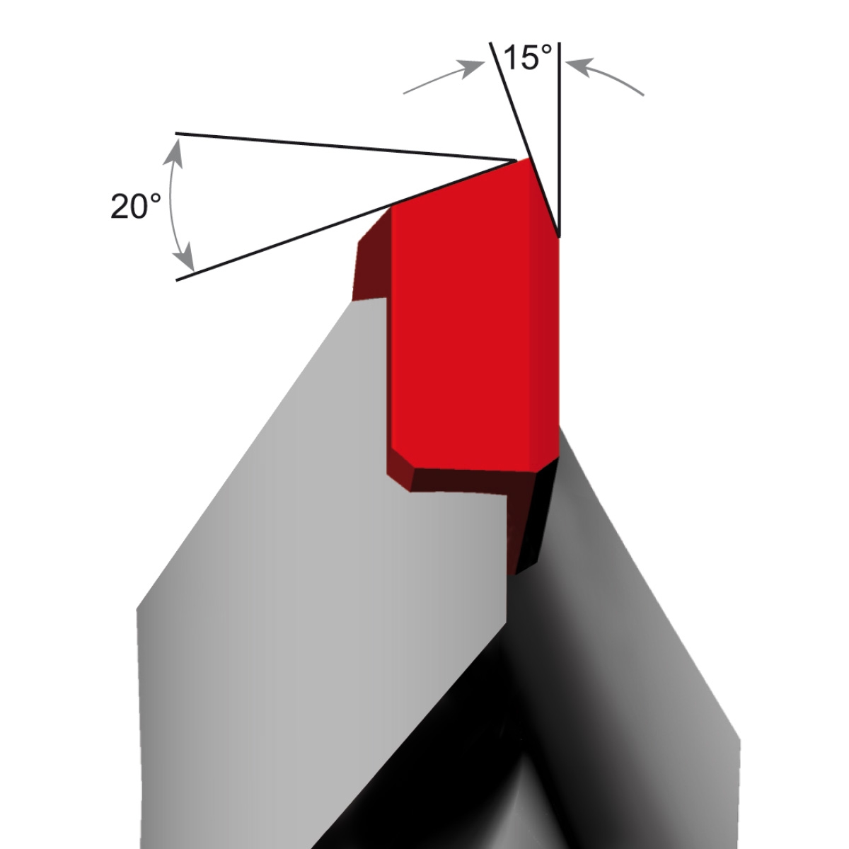 Очень твердая режущая пластина из титан-вольфрамового сплава обеспечивает сверлу чрезвычайную износостойкость.