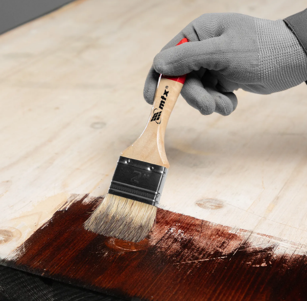 Плоская кисть MTX «Стандарт» с натуральной щетиной и деревянной ручкой, — инструмент для проведения бытовых малярных работ.