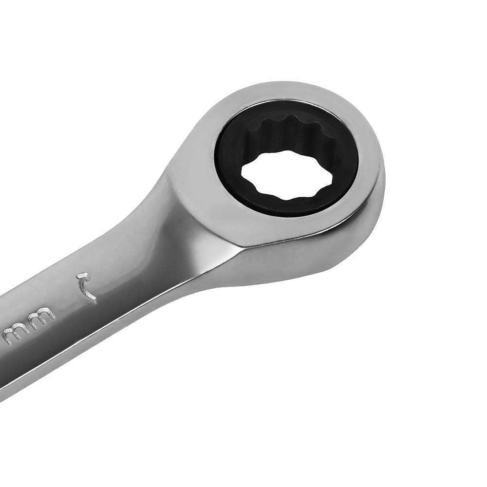 - Накидной профиль – кольцевая двенадцатигранная рабочая часть, снабжен храповым механизмом в 72 зуба, обеспечивающим обратный ход ключа. Эта особенность важна при работе в ограниченном пространстве, а также повышает скорость работы с крепежом. Наличие шести пятен контакта позволяет применять повышенные нагрузки к крепежу без риска его деформации, но для работы требуется доступ к крепежу со всех сторон.