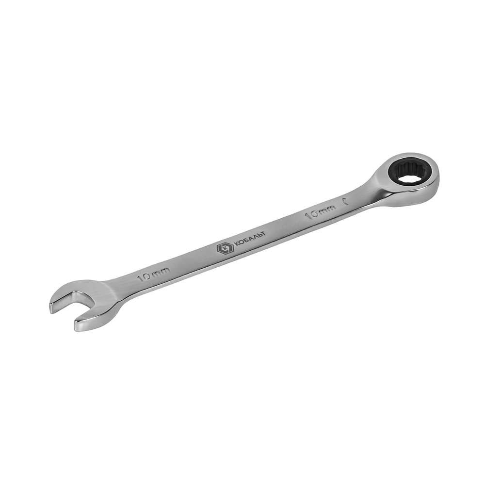 Ключ комбинированный трещоточный 10 мм КОБАЛЬТ 642-517, предназначен для отвинчивания/завинчивания мелкого резьбового крепежа с шестигранными головками при производстве строительных, электротехнических, монтажных и автосервисных работ.