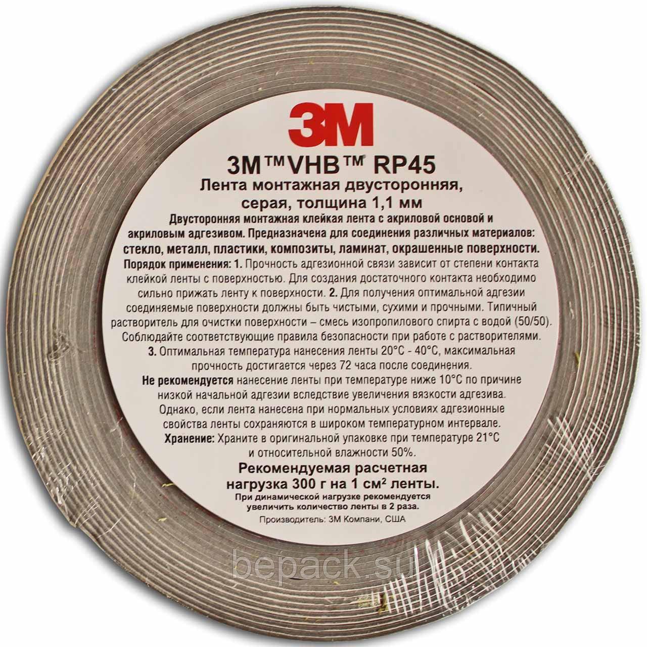 3M™VHB™ RP45 – двусторонняя монтажная клейкая лента с акриловой основой и акриловым адгезивом.