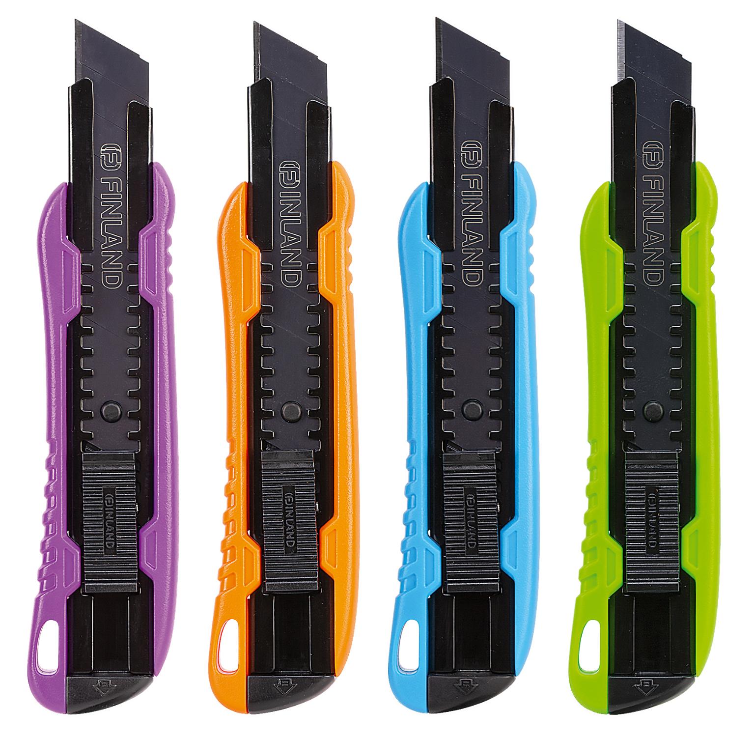 Нож широкий 18мм с отламывающимся лезвием, цветные FINLAND