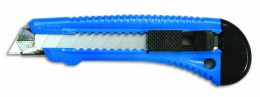 Нож широкий 18мм с отламывающимся лезвием, пластиковый корпус, с металлической направляющей, ручная фиксация