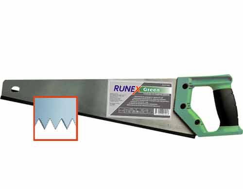 Ножовка по сырой древесине 400мм, прямой крупный зуб, 3,5 з/д, 2-компан. ручка, Runex Green